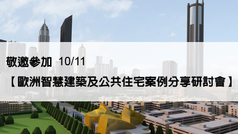 敬邀參加 10/11【歐洲智慧建築及公共住宅案例分享研討會】