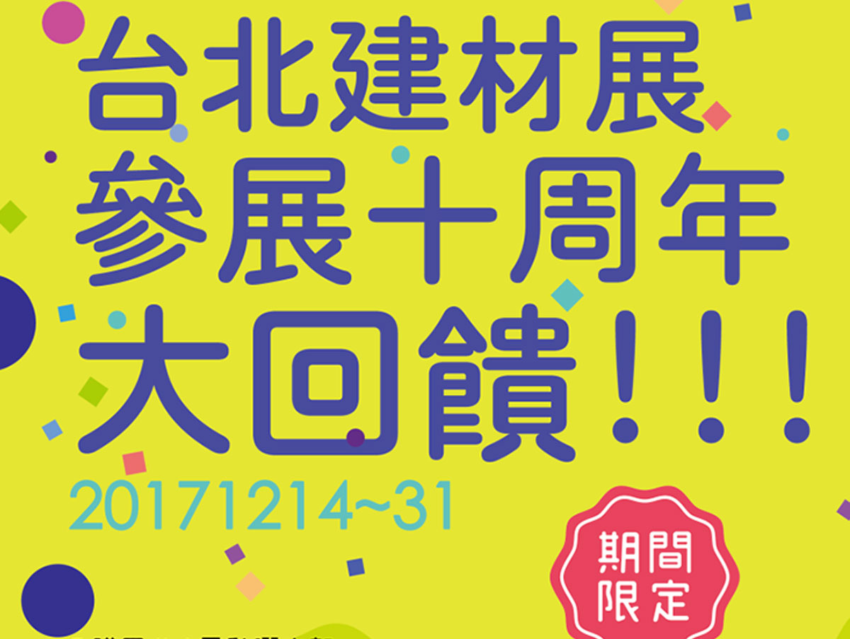 2016/11/18(五)-11/21(一)「2016台北國際建材大展」誠摯邀請您蒞臨