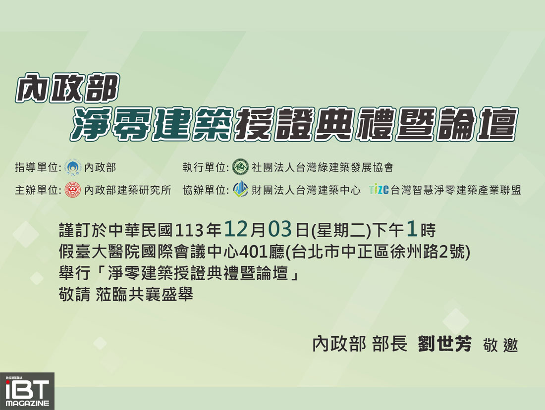敬邀各界先進參加內政部 12/3(二)「淨零建築授證典禮暨論壇」