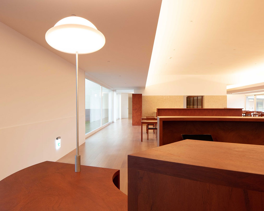 本案既有建物雖非歷史建築,建築師巧妙以黑白色盒子材料外觀區隔了新舊建築的關係,新的菱形黑色盒子,置入公園樹林中,成為反射樹林的屏幕,入口的改變,讓寶貴的樹林與圖書館融合為一體,菱形的量體作為圖書館的新門廳,置入服務功能,成為圖書館親近市民的場域;菱形量體同時有效定義了內外空間與形式的關係;而既有建物內部,除了細膩的室內設計,具備系統性的完整度之外,透過空間結構的改變,提升了空間使用效率,更賦予了空間更良好的品質。