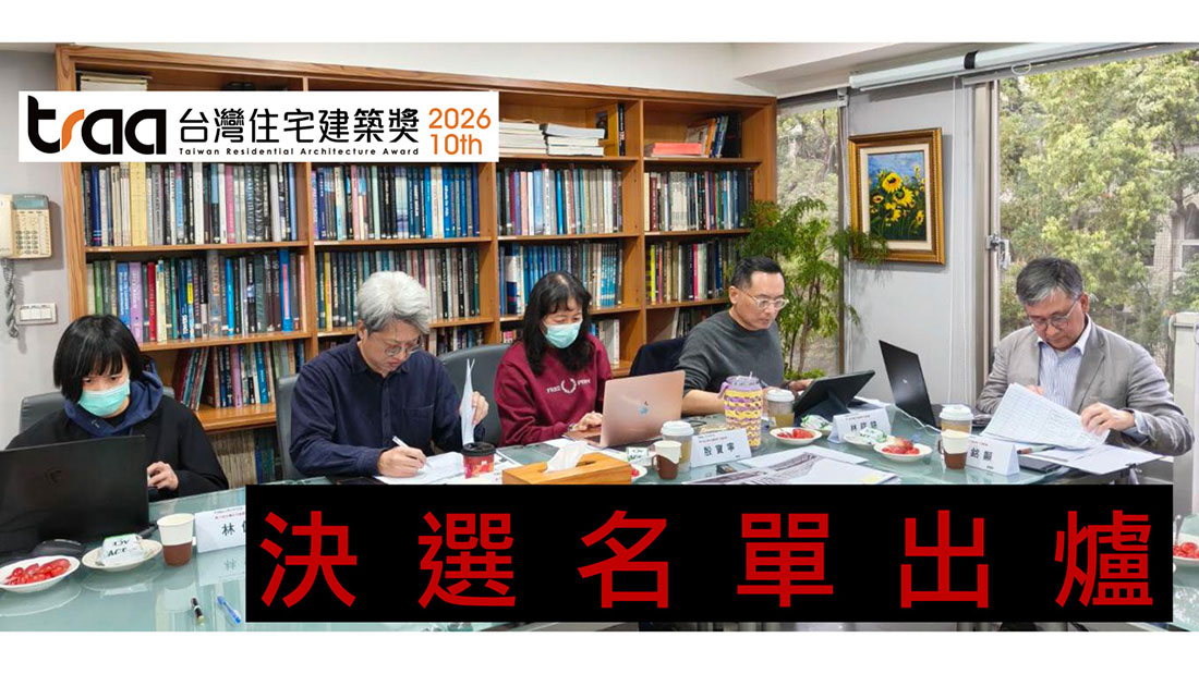 由台灣住宅建築獎協會主辦,台灣建築報導雜誌社及上圓聯合建築師事務所共同企劃執行的「traa台灣住宅建築獎」,至今已邁入第十屆20年。本屆住宅獎共計180件作品參與評選,其中55件為自行報名,並於2026年1月21日,由五位初選評審投票選出55件作品入圍第一階段決選審查。